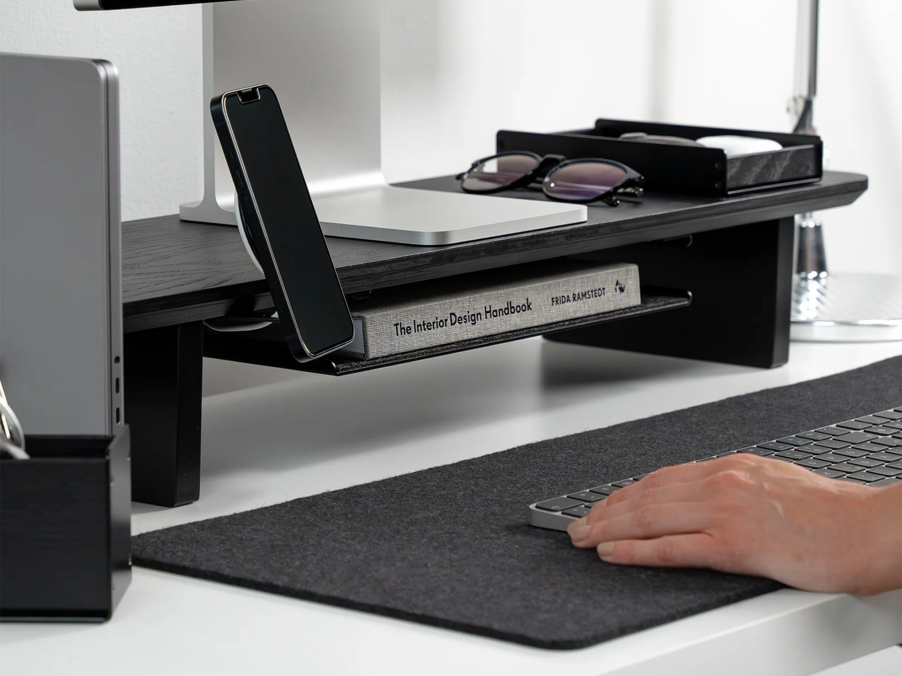 Unsere Bildschirmerhöhung ist präzise und hochwertig verarbeitet. Das durchdachte und minimalistische Design fügt sich in jede Arbeitsumgebung, ob Homeoffice oder Büro, perfekt ein. Es verwandelt jedes Schreibtisch Setup in ein Unikat und schafft dabei ein neues Arbeitsgefühl mit dem individuell anpassbaren Monitorständer Setup Cockpit.