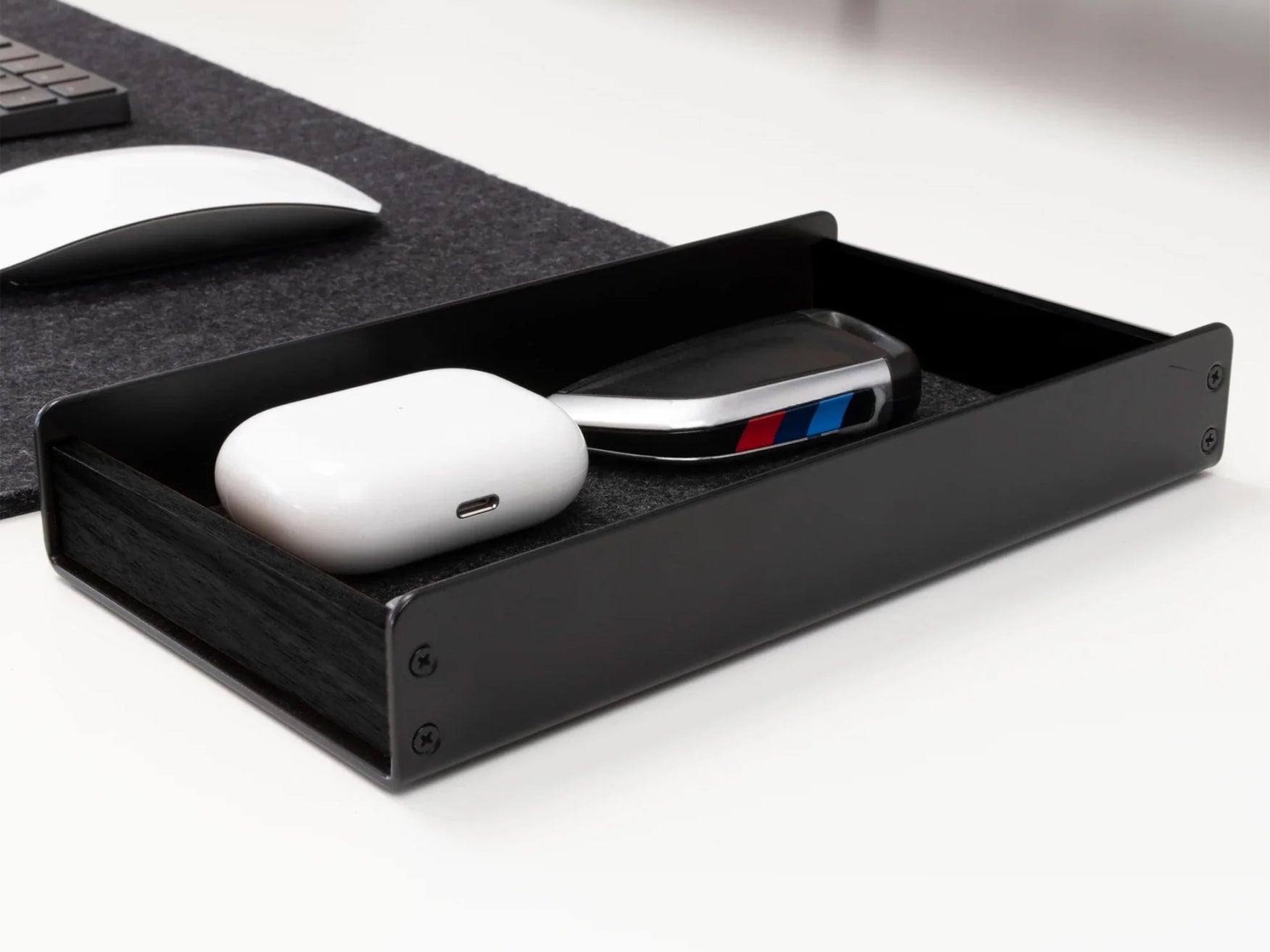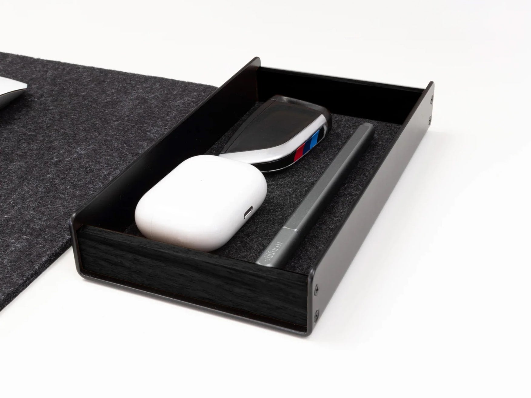 In seiner Funktionalität perfektioniert wird das Setup Cockpit durch eine Reihe modularer Zubehörteile. Diese können an den Montagepunkten des geschützten Montagerasters auf der Unterseite individuell angebracht werden. So wird das fließende Zusammenspiel zwischen Laptop, Smartphone, Kopfhörer und co. zu einer wahren Genugtuung. Für das Extra an Support bei mehreren oder besonders schweren Monitoren, kann der optionale Stützfuß mittig am Montageraster angebracht werden.