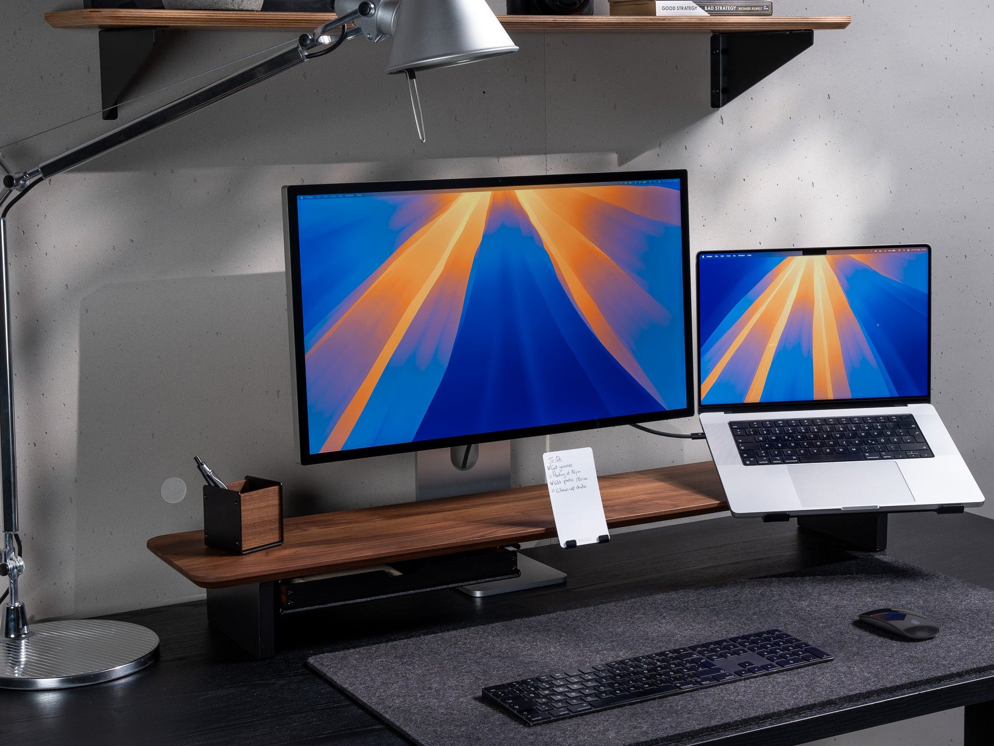 Das BALOLO® Setup Cockpit verbindet Ästhetik und Funktionalität. Die Monitorerhöhung hebt den Bildschirm auf eine ergonomische Höhe. Mit seinem minimalistischen Design wird es in jedem Schreibtisch-Setup zum Statement und erschafft ein neues Level von Struktur und Ordnung.